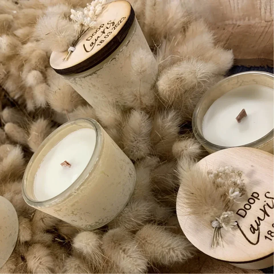 6 mini STONE knetterkaarsen met gegraveerd deksel