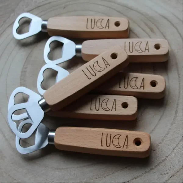 Een blijvende en stevige herinnering aan jullie huwelijk, kindje, communicant, lentefeestertje, sweet 16/18/21/30/40/50/50/70....? Ga dan voor een gepersonaliseerde houten flessenopener. Gegarandeerd succes!