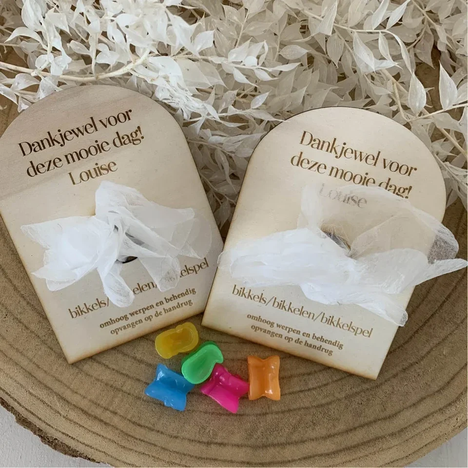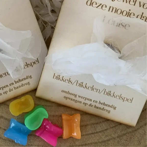 Wie herkent dit speelgoed nog van de speelplaats van toen???? Uuuuren hebben we geoefdend op de bikkels op te gooien en terug te vangen op het vlak van ons hand.... Een origineel en toch klassiek uitdeelgeschenkje voor de kinderen!